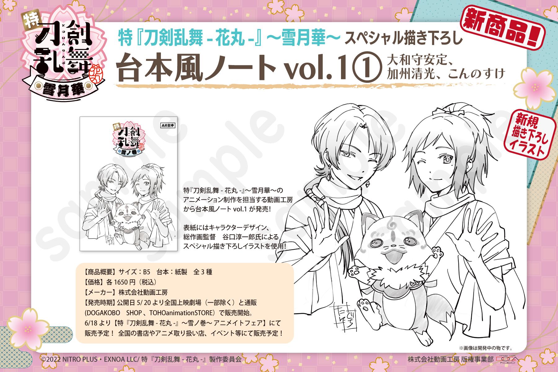 特『刀剣乱舞-花丸-』〜雪月華〜のアニメーション制作を担当する動画工房 から台本風ノートvol.1が発売!