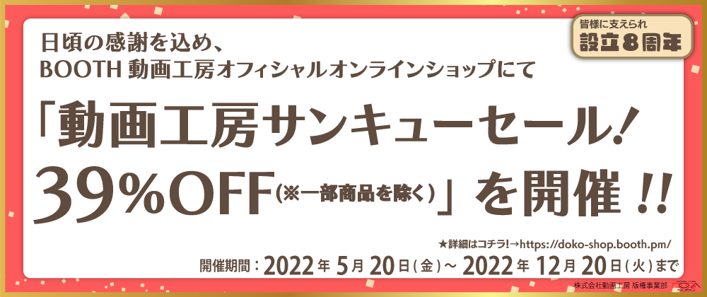 また、動画工房オフィシャルオンラインショップは皆様に支えられ設立8周年を迎えました。