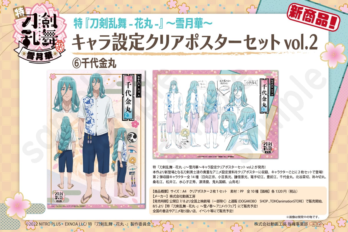 本作より新登場となる刀剣男士達の貴重なアニメ設定資料をクリアポスターに収録。キャラクターごとに2枚セットで登場!