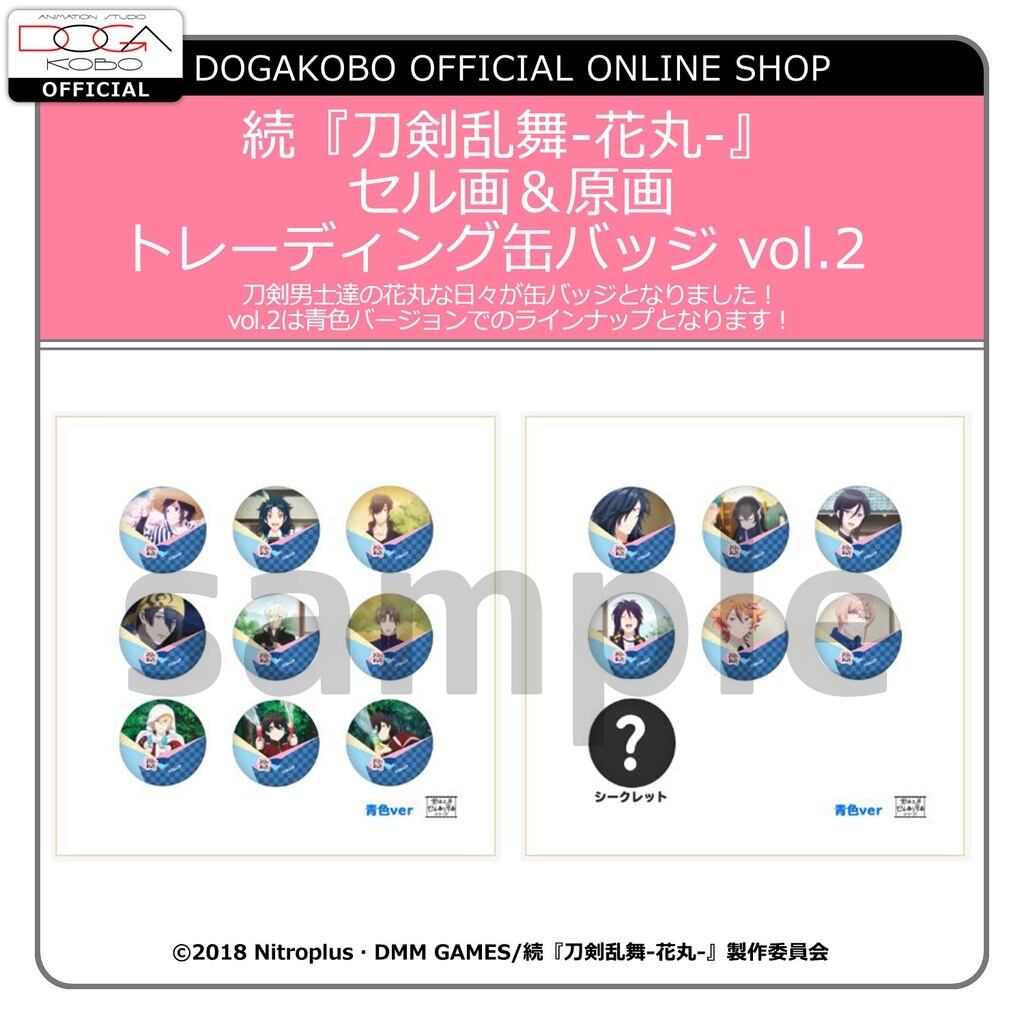 アニメ続『刀剣乱舞-花丸-』のアニメーション制作を担当する動画工房が自ら手掛けるグッズ第9弾!刀剣男士達の花丸な日々が缶バッジとなりました!vol.2は青色バージョンでのラインナップとなります!